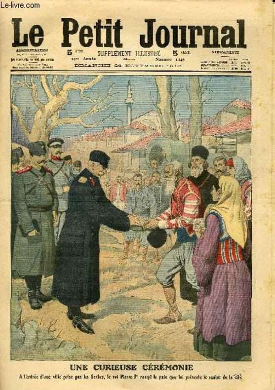 Au bureau du Petit Journal.. 24 novembre 1912. In-12. Broché. Bon état, Couv. convenable, Dos satisfaisant, Intérieur frais. 8 pages illustrées de 2 gravures en couleur en première et quatrième de couverture. . . . Classification Dewey : 70.4411-Le petit journal / Le journal illustré