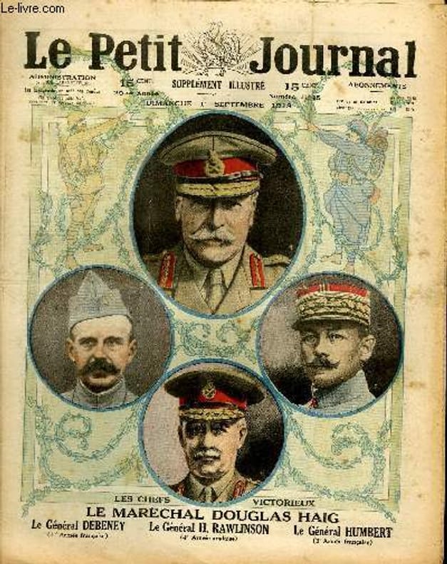 Au bureau du Petit Journal.. 1er septembre 1918. In-12. Broché. Bon état, Couv. convenable, Dos satisfaisant, Intérieur frais. 8 pages illustrées d'une gravure en couleur en première de couverture. . . . Classification Dewey : 70.4411-Le petit journal / Le journal illustré