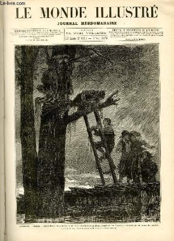 "Journal hebdomadaire. Sommaire : Murice - Les habitants de la maison n°58 de la calle Florida Blanca (barrio de San Benito) se réfugient sur un platane de l'avenue. Espagne - Les désarstres de la province de Murice - Episode de l'inondation. - Sauvetage des habitants de la huertade Beniajan par les marins du train de secours envoyé de Cathagène. Le monument élevé par la ville de Nantes à la mémoire du général de la Moncière, inauguré le 29 ocotbre. Figures décoratives du monument du général de la Moncière, élevé dans la cathédrale de Nantes. L'automne. Italie - Inauguration, à Turin, du monument commémoratif du percement du Mont-Cenis (col du Fréjus). M. Edouard Blanchard, peintre. M. Louis Reybaud, auteur de ""Jérome Paturot"". Classification Dewey : 70.4-Journalisme, chronique"