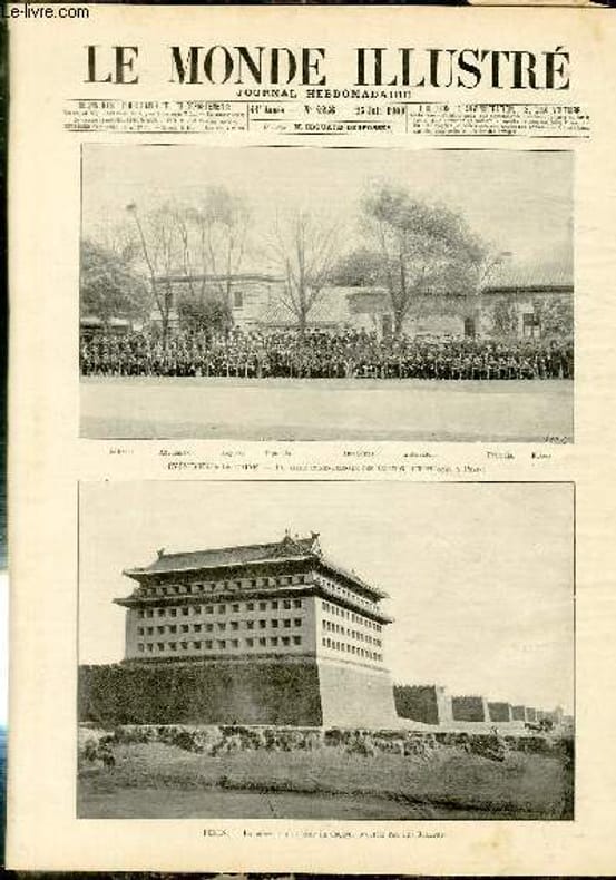 Journal hebdomadaire. Sommaire : La guerre en Chine - Plan de Pékin - Tien-Tsin - Le port sur le Péiho - L'arsenal de Tien-Tsin - Pékin - La porte de Tien-Men - Vue générale de Takou - Fort principal de Takou - Fort à Takou. Takou - Entrée du fort principal - Luxembourg - Réception par S. A. le grand-duc Adolphe de S. M. le Roi de Suède - S. A. R. le Prince de Joinville - Le monument de Desaix sur le Rhin - Strasbourg - Fêtes ducentenaire de Kléber - Beaux-Arts - Bredouille - Tableau de M. Adolphe Tessier - Jeunes mariés - Nouvelle - Illustration de Simont (suite) - Mme Gladstone. Samory. Général Vanson. M. Jacques. Les Boulonnaises à l'Exposition - Paris - Le concours international d'échecs au Grand Cercle de Paris. Classification Dewey : 70.4-Journalisme, chronique