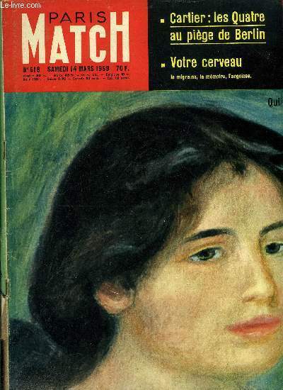 PARIS MATCH. 14 mars 1959. In-12. Broché. Bon état, Couv. convenable, Dos satisfaisant, Intérieur frais. 109 pages augmentées de nombreuses photos et illustrations en noir et blanc et en couleurs dans et hors texte - 1er plat illustré d'une photo en couleurs. . . . Classification Dewey : 70.49-Presse illustrée, magazines, revues