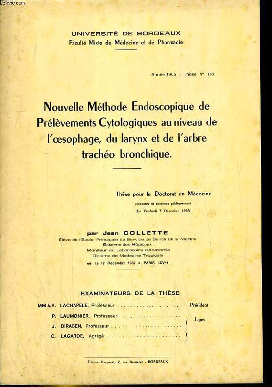bergeret. 1965. In-8. Cartonné. Etat d'usage, Couv. légèrement passée, Dos satisfaisant, Intérieur frais. 73 pages. thèse médicale. Quelques planches de photos en noir et blanc.. . . . Classification Dewey : 616.2-Maladies respiratoires