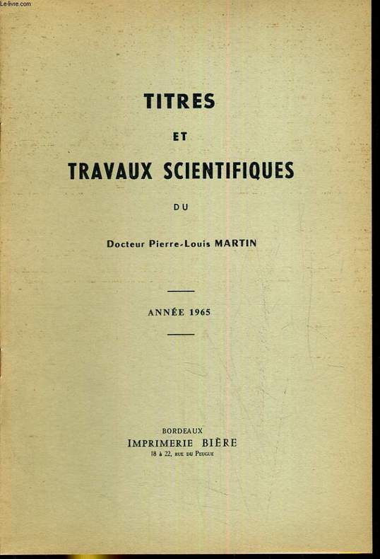 Sommaire : état civil - titres et fonctions - ouvrages et travaux - exposé des titres et travaux - travaux . Classification Dewey : 500-SCIENCES DE LA NATURE ET MATHEMATIQUES