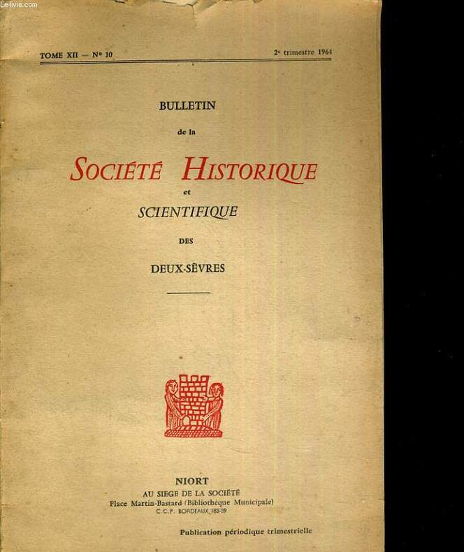Société historique et scientifique des deux-Sèvres. 2e trimestre 1964. In-8. Broché. Etat d'usage, Couv. convenable, Dos satisfaisant, Mouillures. 36 pages.. . . . Classification Dewey : 908.446-Régionalisme : Poitou-Charentes