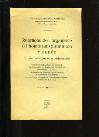 Etude théorique et expérimentale. Travail du laboratoire de chirurgie. Expérimentale de la clinique chirurgicale. Conditions de l'expérimentation sur le lapin, l'homogreffe, élimination passive et active, Les problèmes immunologiques. Classification Dewey : 610-Sciences médicales. Médecine