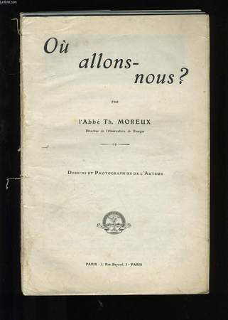 D'où venons-nous ? - Qui sommes-nous ? - Où allons-nous ? - Où sommes-nous ?, Paris; Bonne Presse, 1 volume de format 25 x 17,5 cm, reliure demi basane, 125 + 103 + 112 + 96 pages, dessins et photographies de l'Auteur, bon état. Frais de port en supplément.