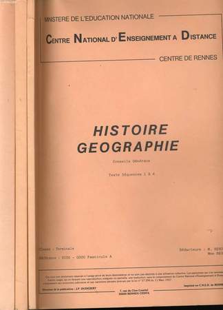 Ministère de l'éducation nationale.. Non daté.. In-4. Broché. Bon état, Couv. convenable, Dos satisfaisant, Intérieur acceptable. 120 + 199 + 269 pages dactylographiées. Nombreuses illustrations et cartes en noir et blanc, dans le texte et hors texte.. . . . Classification Dewey : 372.8-Livre scolaire : autres matières
