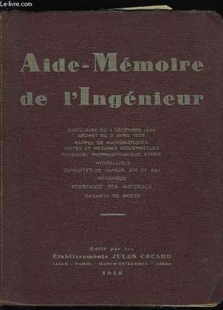 Physique et thermodynamique, conduites de vapeur, air et gaz, gabarits de brides, hydraulique. Classification Dewey : 620-Art de l'ingénieur et activités connexes