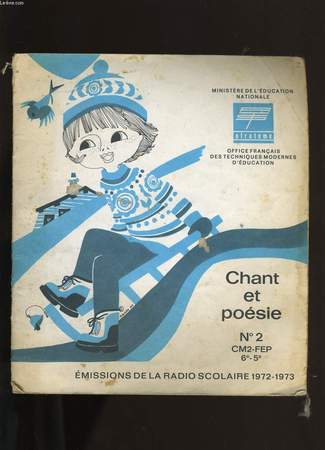 "Emissions de la radio scolaire 1974-1975. Contient ""Les moissonneurs"", ""C'est dedans mon champs"", La chanson du pâtre"", ""Voici le joli mois de mai"", ""La plainte du lièvre"", ""Anne de Bretagne"", ""L'alouette sur la branche"", ainsi que les poésie ""Le renard et la cigogne"" de La Fontaine, ""Chanson pour faire danser en rond les petits enfants"" de Victor Hugo, ""Les amis d'enfance"" de René-Guy Cadou, ""La pluie"" de Max Jacob, ""Madrid"" de Alfred de Musset, ""La Blanche neige"" de Guillaume Apollinaire, ""Le menuisier"" de Eugène Guillevic, ""Conservation"" de Jean Tardieu, ""Chansonnette"" de Jean-Antoine de Baïf, ""Epitaphe d'un petit chien"" de Joachim du Bellay, ""Le pays"" de Charles-Ferdinand Ramuz, ""Le coquillage"" de Maurice Fombeure, ""Chant de nourrice"" de Marie Noël. Partitions pour chant. Classification Dewey : 780.26-Partitions"