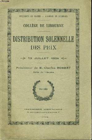 IMPRIMERIE LIBOURNAISE. 1924. In-12. Broché. Etat d'usage, Couv. convenable, Coiffe en tête abîmée, Intérieur acceptable. 47 pages. . . . Classification Dewey : 370-Education