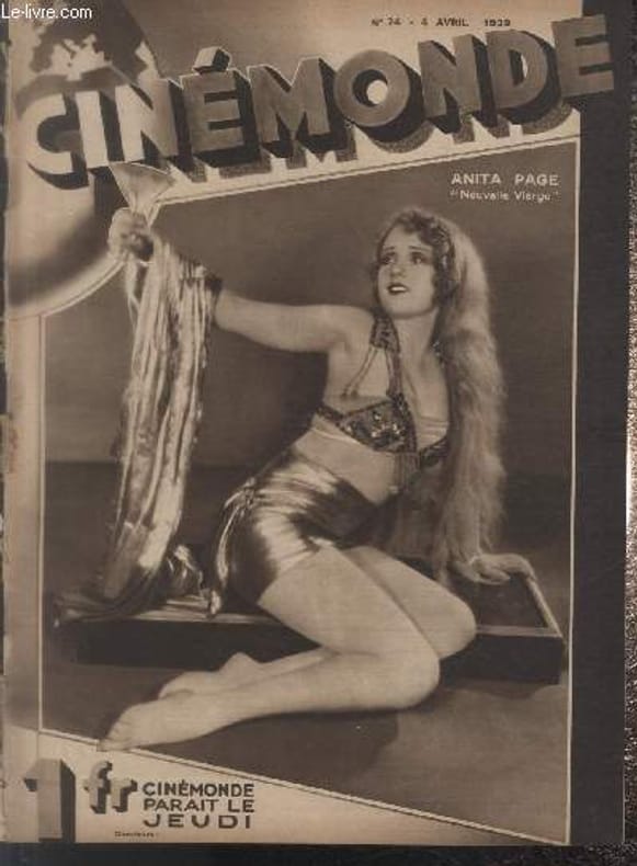 "Hebdomadaire. Une photo de Anita Page ""Nouvelle vierge"" en première de couverture, et une photo de Joan Crawford en quatrième de couverture. Classification Dewey : 791.43-Cinéma"