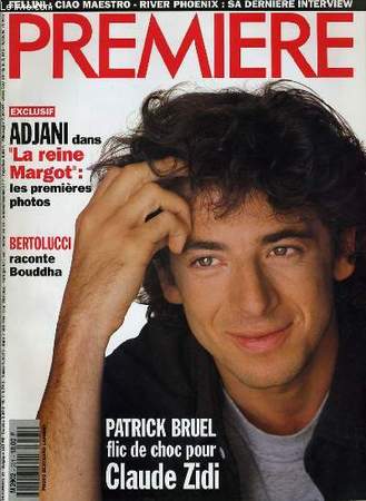 "Revue mensuelle. Une photo de PATRICK BRUEL en couverture. Exclusif/ ADJANI dans ""La reine Margot"": les premières photos - Bertolucci raconte Bouddha... Classification Dewey : 791.43-Cinéma"