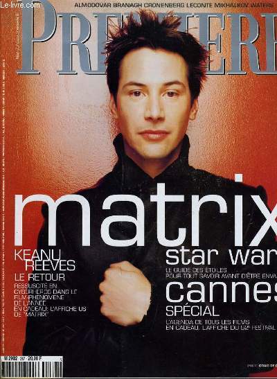 Revue mensuelle. KEANU REEVES, le reout. Ressuscité en cyberhéros dans le film-phénomène de l'année - Star Wars, le guide des étoiles pour tout savoir sans d'être envahi - Cannes, spécial, l'agnda de tous les fims... Classification Dewey : 791.43-Cinéma