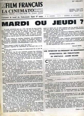 La cinématographie française. Hebdomadaire d'informations cinématigraphique. L'instrument de travail des Professionnels depuis 47 années. Rendements PARIS et Provinces. Classification Dewey : 791.43-Cinéma