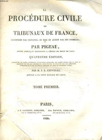 GARNERY / BAVOUX / QUATRIEME EDITION. 1826. In-12. Broché. Etat d'usage, Plats abîmés, Dos abîmé, Intérieur acceptable. 800 pages.. . . . Classification Dewey : 340-Droit