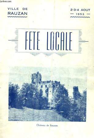 RAUZAN. 2-3-4 AOUT 1953. In-12. Broché. Bon état, Couv. convenable, Dos satisfaisant, Intérieur frais. Non paginé, environ 10 pages. Nombreuses illustrations en noir et blanc, dans le texte.. . . . Classification Dewey : 908.447-Régionalisme : Aquitaine