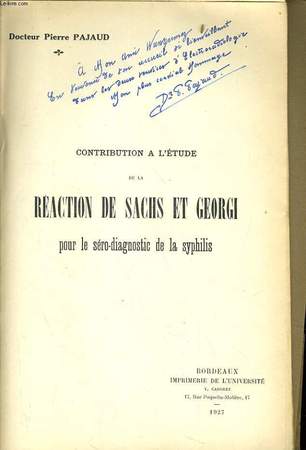 BORDEAU IMPRIMERIE E L'UNIVERSITE. 1927. In-12. Broché. Etat d'usage, Couv. défraîchie, Dos abîmé, Non coupé. 39 pages. Envoi du docteur Sajand.. . . . Classification Dewey : 610-Sciences médicales. Médecine