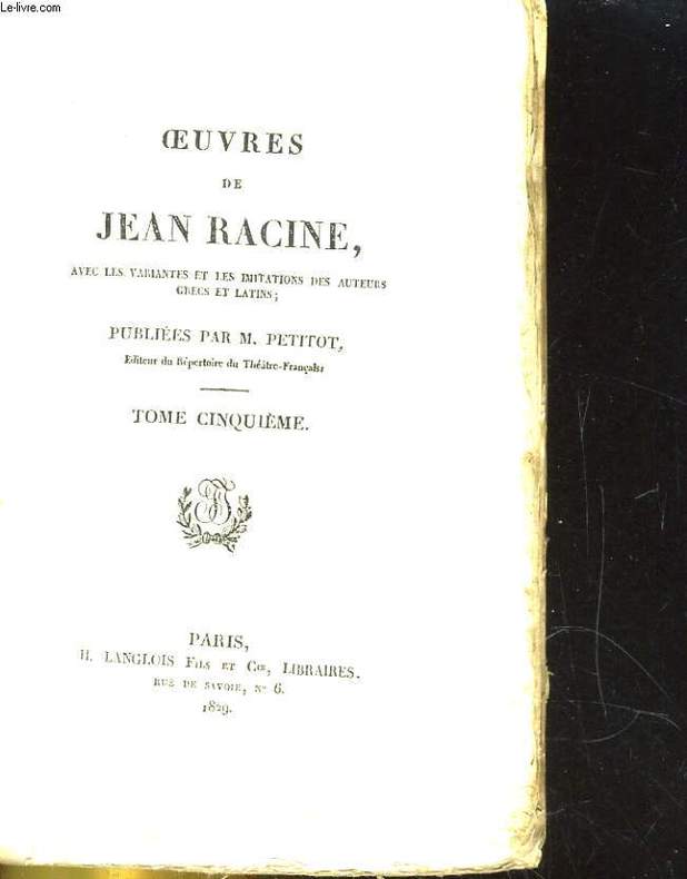 LANGLOI S/ PETITOT. 1829. In-8. Broché. A relier, Couv. défraîchie, Dos abîmé, Déchirures. 310 pages. Rousseurs.. . . . Classification Dewey : 840.08-XIX ème siècle