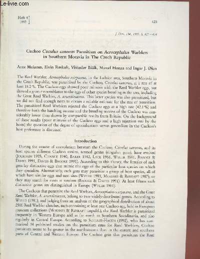 Journal Ornithologique. 1993. In-8. Broché. Bon état, Livré sans Couverture, Agraffes rouillées, Intérieur frais. Pages 425 à 434. Relié par deux agraffes. Texte en anglais. Une photo en noir et blanc in-texte.. . . . Classification Dewey : 420-Langue anglaise. Anglo-saxon