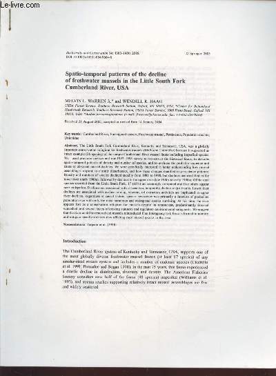 Biodiversity and Conservation. 2005. In-4. Broché. Bon état, Livré sans Couverture, Agraffes rouillées, Intérieur frais. Paginé de 1383 à 1400. Relié par deux agraffes. Texte en anglais.. . . . Classification Dewey : 420-Langue anglaise. Anglo-saxon