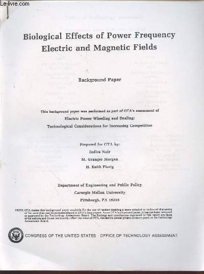 Office of Technology Assesment. Non daté. In-4. Broché. Bon état, Couv. convenable, Dos satisfaisant, Intérieur frais. 103 pages augmentées de quelques illustrations en noir et blanc dans le texte. Relié par une agraffe. Texte en anglais sur deux colonnes.. . . . Classification Dewey : 420-Langue anglaise. Anglo-saxon