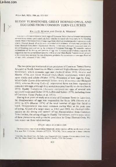 Wilson Bulletin. 1986. In-8. Broché. Bon état, Livré sans Couverture, Agraffes rouillées, Intérieur frais. Paginé de 101 à 109. Texte en anglais. Relié par deux agraffes.. . . . Classification Dewey : 420-Langue anglaise. Anglo-saxon