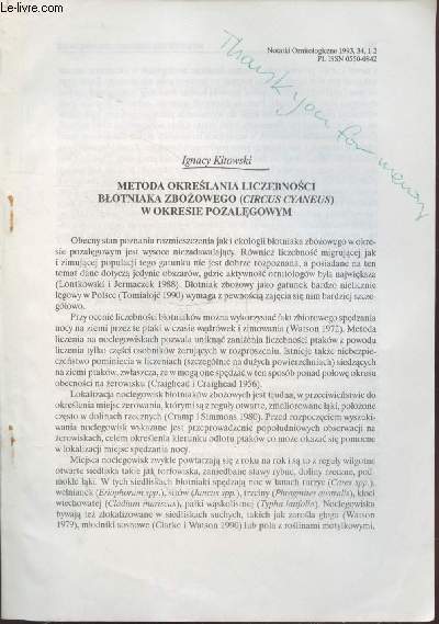 Notaki Ornitologiczne. 1993. In-8. Broché. Bon état, Couv. convenable, Dos satisfaisant, Intérieur frais. 4 pages augmentées d'une illustration en noir et blanc dans le texte. Texte en polonais. Relié par deux agraffes. Annotation à l'encre sur la première page.. . . . Classification Dewey : 490-Autres langues