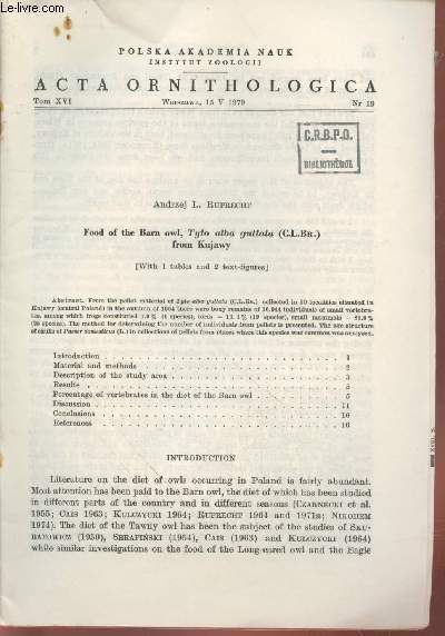 Polska Akademia Nauk / Instytut Zoologi. 1979. In-8. Broché. Bon état, Couv. convenable, Agraffes rouillées, Non coupé. Paginé de 493 à 511.Relié par deux agraffes. Texte en anglais. Tampon de bliblothèque sur la première page.. . . . Classification Dewey : 420-Langue anglaise. Anglo-saxon