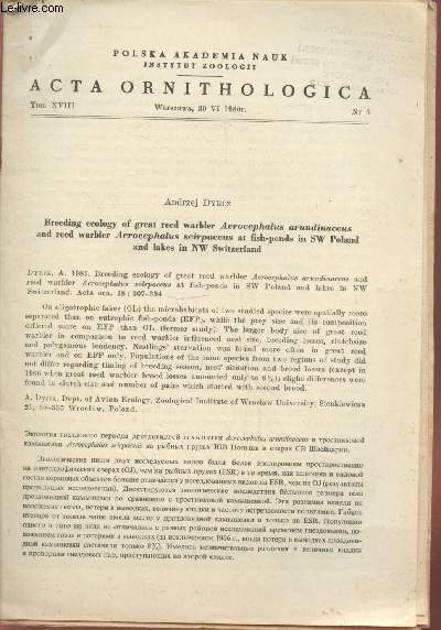 Polska Akademia Nauk / Instytut Zoologi. 1980. In-8. Broché. Bon état, Livré sans Couverture, Agraffes rouillées, Intérieur frais. Paginé de 307 à 333. Relié par deux agraffes. Texte en anglais et résumé en langue slave. Tampon sur la première page.. . . . Classification Dewey : 420-Langue anglaise. Anglo-saxon