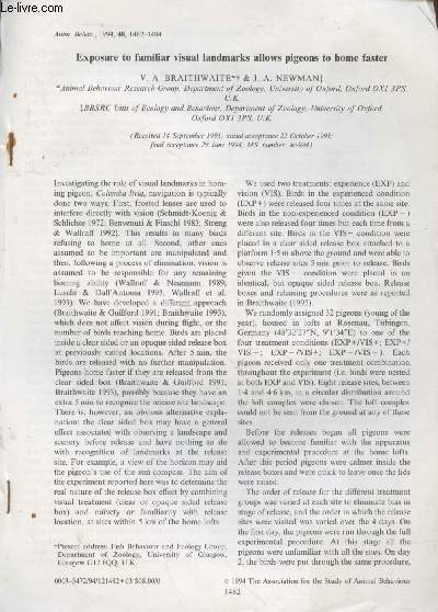 The Association for the Study of Animal Behaviour. 1994. In-8. Broché. Bon état, Livré sans Couverture, Agraffes rouillées, Intérieur frais. Paginé de 1482 à 1484. Relié par deux agraffes. Texte sur deux colonnes en anglais.. . . . Classification Dewey : 420-Langue anglaise. Anglo-saxon