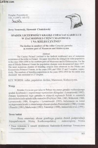 Przeglad Przyrodniczy. 1997. In-8. Broché. Bon état, Livré sans Couverture, Agraffes rouillées, Intérieur frais. Paginé de 169 à 172. Quelques illustrations en noir et blanc dans le texte. Relié par trois agraffes. Texte en langue slave.. . . . Classification Dewey : 490-Autres langues