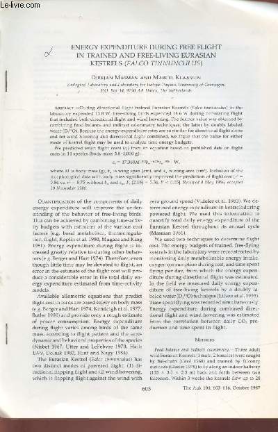 The Auk. 1987. In-8. Broché. Bon état, Livré sans Couverture, Agraffes rouillées, Intérieur frais. paginé de 603 à 616. Texte en anglais sur deux colonnes. Relié par deux agraffes. Quelques graphiques en noir et blanc dans le texte.. . . . Classification Dewey : 420-Langue anglaise. Anglo-saxon