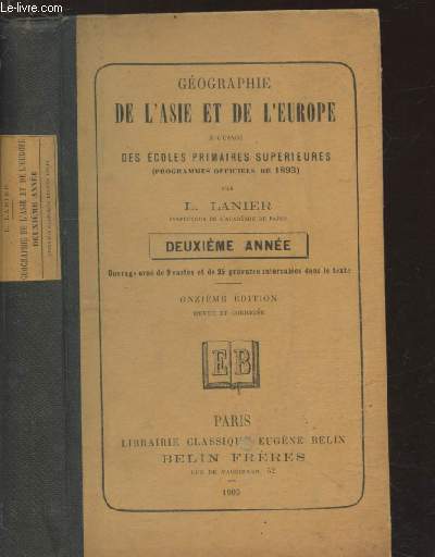 Librairie Classique Eugène Belin. 1905. In-12. Relié. Bon état, Couv. convenable, Dos satisfaisant, Rousseurs. 424 pages augmentées de nombreuses illustrations en noir et blanc dans et hors texte. Annotation à l'encre sur le premier contre-plat.. . . . Classification Dewey : 372.89-Livre scolaire : histoire / géographie