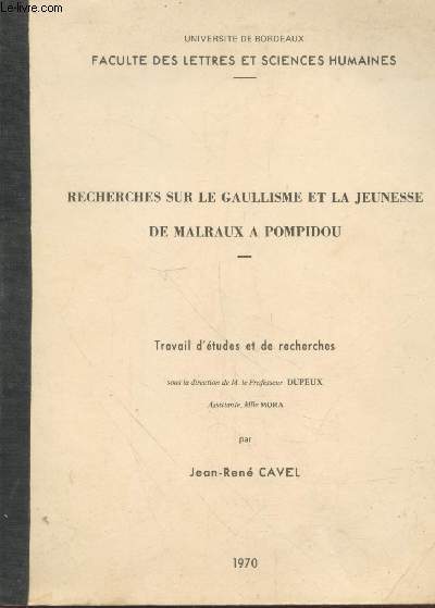 Université de Bordeaux. 1970. In-4. Broché. Bon état, Couv. convenable, Dos satisfaisant, Intérieur frais. 188 pages de texte tapuscrit.. . . . Classification Dewey : 320-Science politique