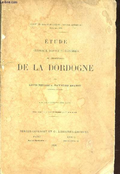 Berger-Levrault et Cie. 1896. In-4. Broché. Bon état, Couv. défraîchie, Dos abîmé, Intérieur frais. 131 pages augmentées de quelques graphiques en noir et blanc hors texte dépliant. Une carte en couleurs dépliante hors texte.. . . . Classification Dewey : 908.447-Régionalisme : Aquitaine