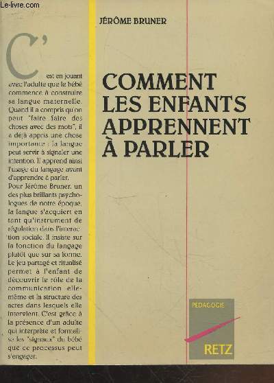 Retz. 1987. In-8. Broch. Bon tat, Couv. convenable, Dos satisfaisant, Intrieur frais. 127 pages. Une annotation au crayon sur le second contre-plat.. . . . Classification Dewey : 155.4-Psychologie de l'enfant