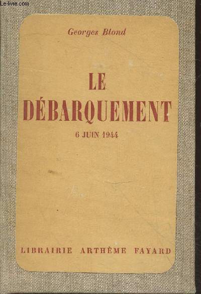 État : Bon état - Année : 1951 - Format : in 8° - Pages : 375pp - Editeur : Librairie Arthème Fayard - Lieu d'édition : Paris - Type : Broché - Manque : La jaquette - Divers : Couv un peu frottée aux coiffes et aux mors. Une date et une signature en haut de la page de faux-titre. - Commander rapidement : https://www.bons-livres.fr/livre/georges-blond/5303-le-debarquement-6-juin-1944?lrb