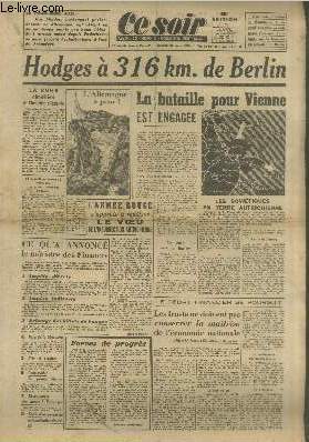 Grand quotidien d'information indépendant. Sommaire :Hodges à 316 km de Berlin - La bataille pour Vienne est engagée - Les soviétiques en terre autrichiene - La Ruhm cimetière de l'industrie allemande - Le débat financier se poursuit : Les trusts ne doivent pas conserver la maîtrise de l'économie nationale - L'armée rouge s'apprête à réaliser le voeu de l'insurrection autrichienne -etc Classification Dewey : 70.1-Journaux