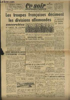 "6e édition. Sommaire : Les troupes françaises déciment les divisions allemandes encerclées à l'ouest de Colmar - Le discours du Général de Gaulle - Concentrations massives de l'armée Rouge sur l'Oder - C'est maison-blanche l'aérodrome d'Alger - Rentrée de la consultative et conférence des commissaires de la République - ""La mort noire"" - etc . Classification Dewey : 70.1-Journaux"