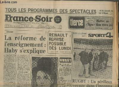 Sommaire : La réforme de l'enseignement : Haby s'explique - Renault : reprise possible dès lundi - Divorces : un plan de garde des enfants - Kissinger : fifty-fifty - Rugby :un périlleux voyage dans l'inconnu - A vendre pour cause de pollution : Une flottille de pêche près de Calais - Isabelle Adjani devient la fille de Victor Hugo - Les français sont comme ça - 1210 battements de pied par minute Philippe Bouvard - etc. Classification Dewey : 70.1-Journaux