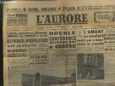L'Aurore. 1954. In-Folio. En feuillets. Etat d'usage, Couv. convenable, Dos satisfaisant, Papier jauni. 10 pages augmentées de nombreuses photos et illustrations en noir et blanc dans le texte. Texte sur plusieurs colonnes. Pliures. Rousseurs naturelles.. . . . Classification Dewey : 70.1-Journaux