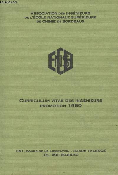 Association des Ingénieurs de l'Ecole Nationale Supérieure de Chimie de Bordeaux. Non daté. In-12. Broché. Bon état, Couv. convenable, Dos satisfaisant, Intérieur frais. 25 pages. Texte tapuscrit. Quelques feuillets tapuscrits en lien en supplément.. . . . Classification Dewey : 908.447-Régionalisme : Aquitaine