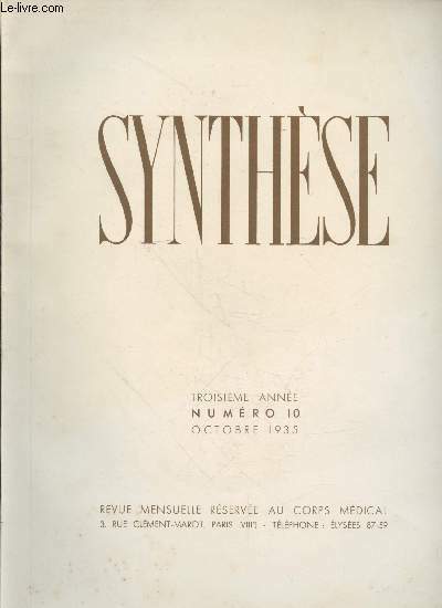Synthèse. 1935. In-Folio. Broché. Bon état, Couv. convenable, Dos satisfaisant, Intérieur frais. 80 pages augmentées de nombreuses photos et illustrations en noir et blanc dans et hors texte dont quelques-unes contrecollées. Texte sur deux colonnes. Nombreuses pages publicitaires illustrées en noir et blanc. Quelques pages désolidarisées.. . . . Classification Dewey : 70.49-Presse illustrée, magazines, revues
