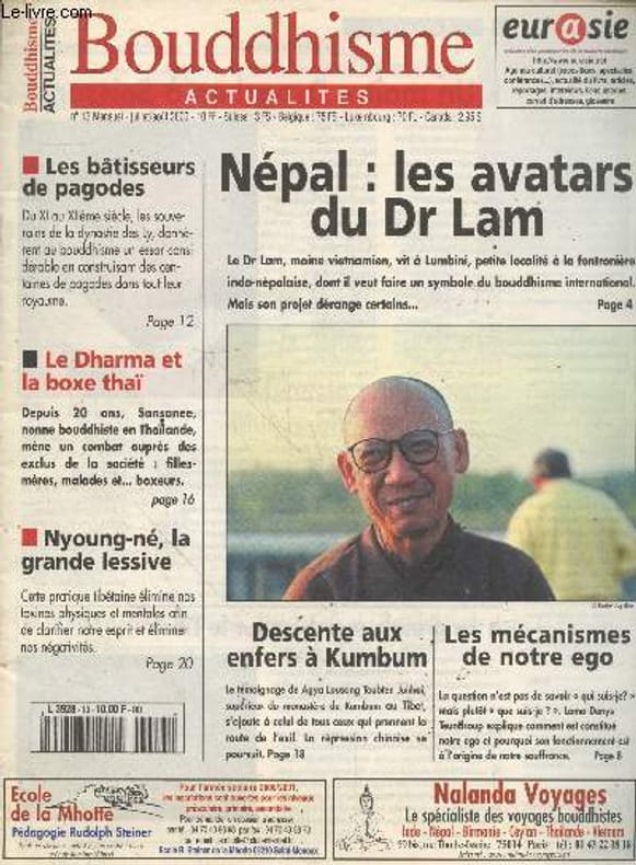 Mensuel. Sommaire : Un maitre Dzogchen à Soissons, Les avatars du moine, le Dr Lam, au Népal, Phende Rinpotché : formons une communauté de pratiquants laïques, Le fonctionnement fondamental de l'ego, Etre ou ne pas être ? Là est la fausse question Classification Dewey : 294-Religions d'origine hindoue