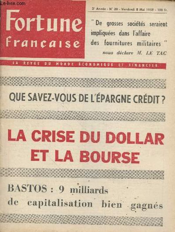 Fortune Française. 1959. In-4. Broché. Bon état, Couv. convenable, Dos satisfaisant, Intérieur frais. 48 pages agrafées. Texte en colonnes. Quelques graphiques.. . . . Classification Dewey : 70.1-Journaux