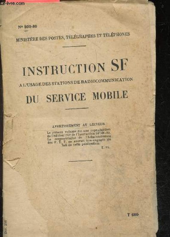 """le present volume est une reproduction de l'edition 1939 de l'instruction SF 500-80. La responsabilite de l'administration des PTT ne saurait etre engagee du fait de cette publication"" Classification Dewey : 621.382-Télécommunications"