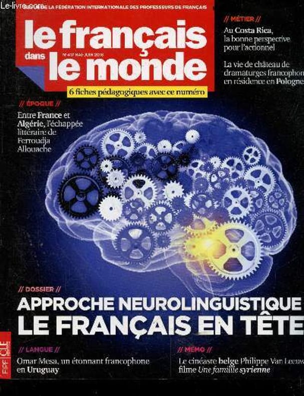 approche neurolinguistique le francais en tete- omar mesa etonnant francophone en uruguay- cineaste belge philippe van leeuw filme une famille syrienne- au costa rica la bonne perspective pour l'actionnel- la vie de chateau de dramaturges francophones en residence en pologne- entre france et algerie l'echappée litteraire de ferroudja allouache... 6 fiches pedagogiques ... Classification Dewey : 70.49-Presse illustrée, magazines, revues