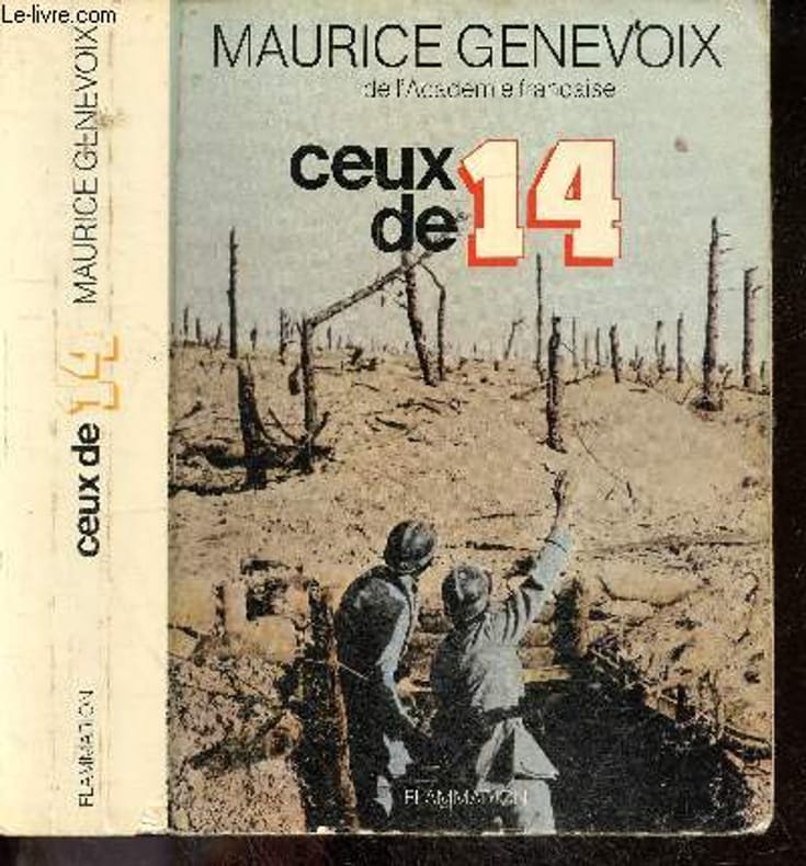 Ceux de 14 de Maurice Genevoix chez G. Durassié & Cie, Éditeurs en 1953. Le livre est illustré par André Lagrange. Le livre mesure 15x21 cm et pèse 0,800 kg (c) pour 334 et 354 pages. Reliure d'éditeur souple, Broché. Le livre est en très bon état, quelques traces de colle de scotchs.