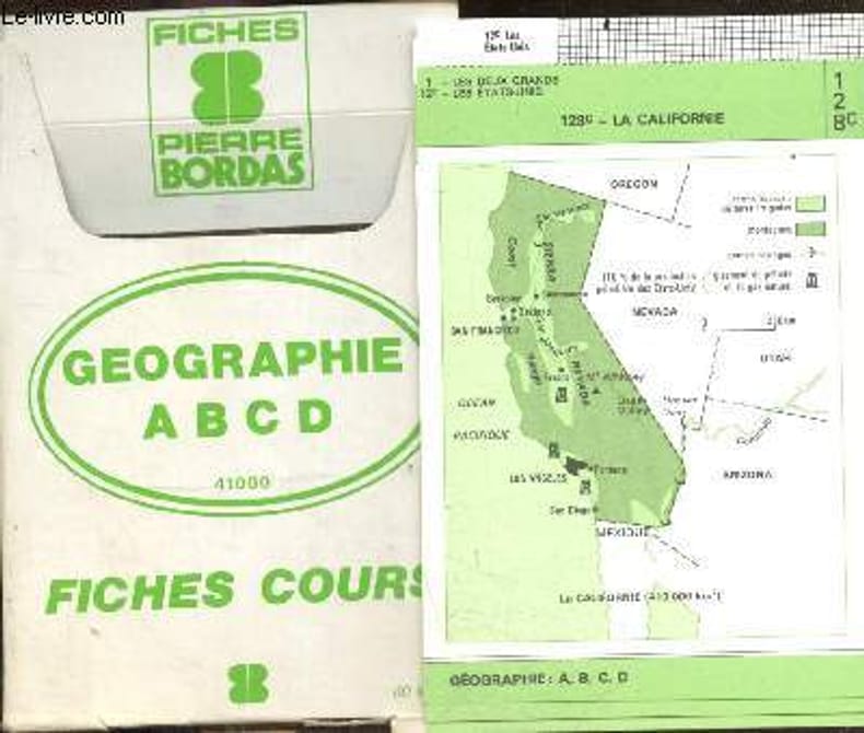 PIERRE BORDAS. 1984. In-12. En feuillets. Bon état, Couv. convenable, Dos satisfaisant, Intérieur frais. Environ 80 fiches imprimées recto verso en noir et vert, nombreuses cartes. Fiches contenu dans un boitier de carton légèrement abîmé. . . . Classification Dewey : 372.89-Livre scolaire : histoire / géographie