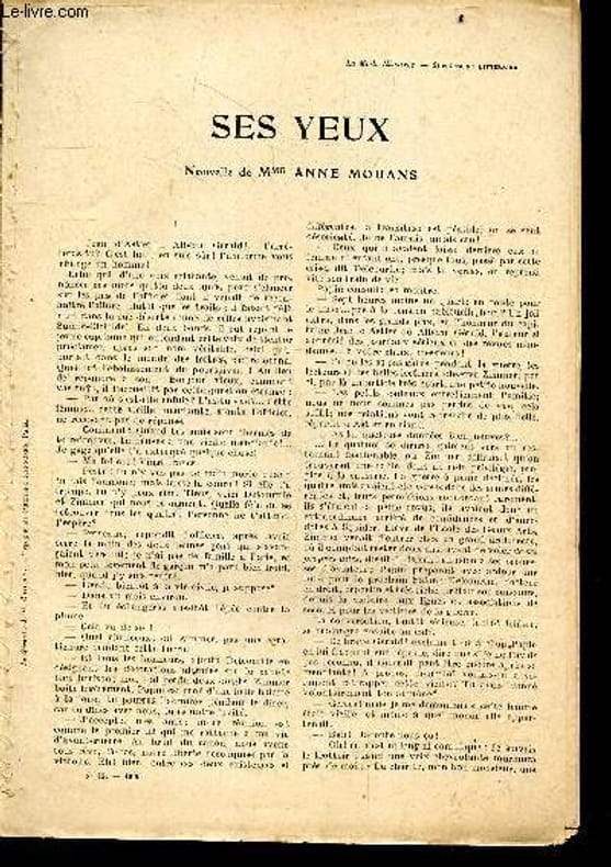 "LA MODE ILLUSTREE. 1920. In-8. Broché. Etat d'usage, Livré sans Couverture, Dos satisfaisant, Quelques rousseurs. 19 + 25 pages reliées artisanalement (feuillets ""cousus"" ensemble) - texte sur deux colonnes. . . . Classification Dewey : 840.091-XX ème siècle"